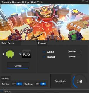 Простая в установке программа занимает мало места на вашем телефоне. Несколькими нажатиями вы легко выбираете тот ресурс, который хотите ввести в приложение. Программа легко взламывает Героев Утопии и не вредит вашему смартфону. С установкой приобретете огромное количество новых возможностей. Собирайте собственную команду из 20 человек, каждый с индивидуальными навыками и побеждайте злодеев вместе. Соревнуйтесь в турнирах галактических масштабов с участниками со всего мира. Модернизируйте оборудование, приобретайте любые умения, создавайте оружие на свой вкус и покупайте неограниченное количество бонусов. Начните с помощью этого взлома Evolution: Heroes of Utopia | Эволюция: Герои Утопии наслаждаться сочной и яркой графикой в стиле мультипликационного реализма, станьте лучшим Героем галактики и спасите Утопию.