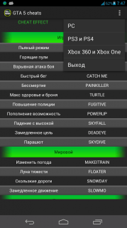 Чит-коды GTA5 & Manual - это мануал и помощь в прохождении Grand Theft Auto V. Данное мобильное приложение поддерживается двумя ОС: Андроид и iOS. Оно содержит более 150 страниц полезной информации для владельцев PC, PS и XBox. Узнайте секреты Лос-Сантоса и его окрайн, о том где спрятаны вещи и лежат пейоты.