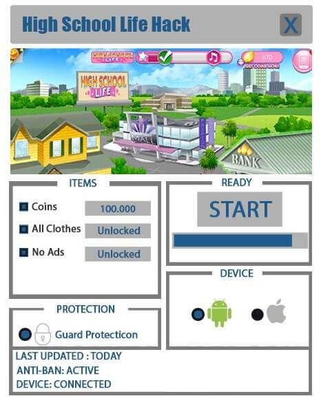 Чит для High School Life даст вам 9999 денег, а это значит, что вы станете самой крутой и модной девушкой в школе. Бесконечный шоппинг – это же отлично, ведь столько нарядов ждут чтобы их купили. Теперь чтобы модно одеваться больше не нужно работать или клянчить деньги у родителей, просто заходите в любой бутик торгового центра, и покупает самые топовые наряды и украшения.