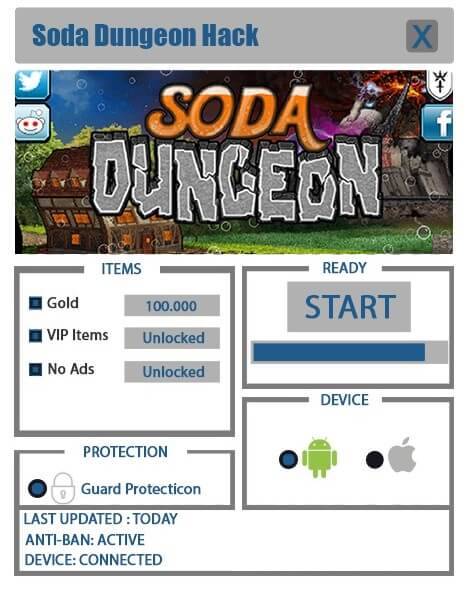 Взлом Soda Dungeon может дать буквально бесконечное количество любого внутреигрового ресурса, будь то деньги, опыт или даже манна. Взлом заметно экономит ваше время и силы, просиживать за игрой долгими часами больше не нужно, просто заходите в игровой магазин и покупаете то что вам нужно. Ещё одной полезной особенностью взломанной игры является то, что полностью исчезает вся реклама, назойливые баннеры и огромные всплывающие окна больше не будут портить вам нервы и позволят насладиться отличным геймплеем. Программа занимает очень мало места в памяти устройства, быстро и легко устанавливается, а с процессом установки сможет справиться буквально каждый пользователь.