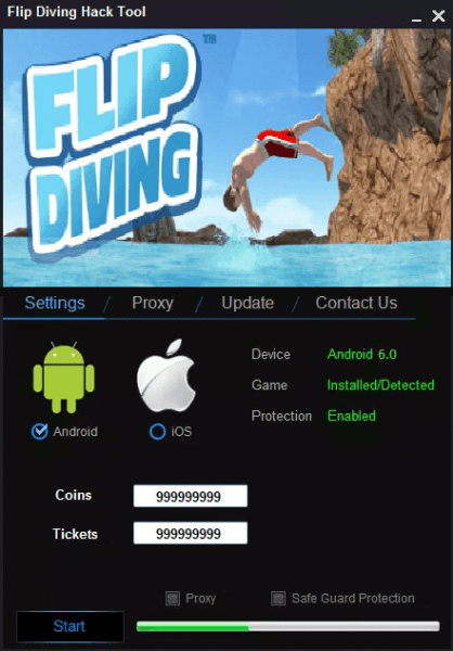 Взломанный Flip Diving - это практичный способ, который позволяет установить необходимый баланс в игре, путем редактирование определенного участка информации. Ведь каждый геймер мечтает, чтобы в его распоряжении было неограниченное количество ресурсов. Игровую валюту всегда можно пустить на благое дело и наслаждать развитием своего героя или целого королевства. Как взломать Flip Diving? Все довольно просто! Программа функционирует в автономном режиме. Для ее запуска потребуется лишь провести установку. Разработка эффективно корректирует упорядоченный код в игровом приложении и определяет точное значение необходимого параметра. Чит на Flip Diving надежно блокирует появление рекламных роликов, которые всплывают в процессе игры.
