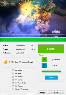 Взлом для Sky Force 2014 даст тебе очень много монет, а самое главное бесконечное количество МЕГА-БОМБ! Взрывай сколько захочешь и когда захочешь. Так же для удобства ты сможешь купить все улучшения, играть станет намного веселее и приятнее.