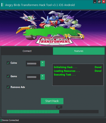 Чит для Angry Birds Transformers даст вам бесконечное количество монет и кристаллов, с помощью которых вам откроется полный доступ в магазин. Покупайте все что хотите, вам больше не нужно задумываться о балансе, а главное это очень просто. Чит не требует особых знаний, он делает все автоматически, следуйте инструкции и он сделает все за вас.