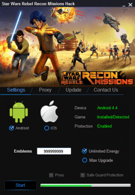 Взлом на Star Wars Rebels: Missions - Звёздные войны: Повстанцы даст вам 9999999 эмблем. Скачав эту небольшую программу-чит, вы получаете неограниченный доступ ко всем ресурсам: кристаллам, золоту, очкам здоровья и энергии. Все это способно сильно облегчить вам жизнь в Star Wars. Вы сами будете решать, сколько и каких бонусов вам необходимо. Любое количество выставляется нажатием одной кнопки. Функциональность данной программы протестирована на 100%. В чите для игры Звёздные войны: Повстанцы имеется встроенная систему Анти-бана, а также прокси-защита.