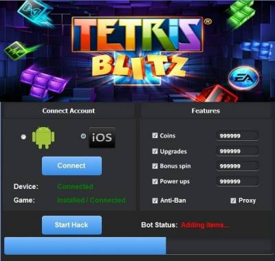Чит представляет собой так званый "режим Бога". Вы получаете нескончаемые ресурсы за которые вы можете покупать те самые "плюшки". Так же есть возможность получать "примочки", которые можете купить якобы только за реальные вложения. Все что вам нужно это скачать чит на Tetris Blitz. И вы станете лучшим. Больше не нужно никаких своих вложений.