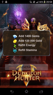Взлом на Dungeon Hunter 5 даст вам 999999 кристаллов и золота. Чит имеет несколько вариантов накрутки: накрутка кристаллов и золота. Размер этого чита не занимает много памяти и позволяет установить его на любой андроид смартфон. Теперь не придется покупать игровую валюту или с огромными усилиями добывать ее. У вас будет столько кристаллов, сколько пожелаете, а игровой сюжет станет куда интереснее.