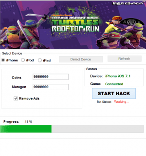 Взлом на Teenage Mutant Ninja Turtles: Rooftop обеспечит вас любым количеством золотых монет и тем самым сделает так, чтобы у вашего героя было все необходимое для борьбы даже с самым сложным соперником. С помощью этого чита вы без проблем сможете спасти город и уничтожить своего врага. Чит устанавливается очень легко, без особых знаний ПК. А еще в нем есть встроенный анти-бан, которые сделает так, что вас в игре невозможно будет заблокировать.