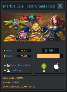 Взлом на Marble Duel - Повелители сфер даст вам 999999 золотых монет и сердец. Устанока чита не требует глубоких познаний в вашем компьютере или IT технологиях,Вам понадобится всего несколько минут на его установку и вперед,все улучшения и бонусы в вашем распоряжении.