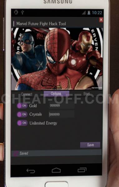 Взлом Marvel Future Fight даст вам 999999 золотых монет и кристаллов, с помощью которых Вы сможете купить все что вам захочется. Все чемпионы и дополнительные предметы теперь в свободном доступе, попробуйте каждого и испытайте всю мощь масштабных битв. Взлом не приносит вред вашему мобильному устройству и действует только на игру, так же он не обнаруживается разработчиками, поэтому Вы защищены от бана.