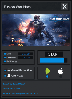 Взлом на Fusion War даст вам 99999 золотых монет и алмазов. Между боями, в игре можно будет покупать новое, мощное оружие, а так же экипировать воина, с помощью монет. Их можно будет зарабатывать на протяжении игры, или же покупать за реальные деньги, и потом использовать в игре. Присутствие счетчика энергии, будет помогать вам, контролировать свои силы. Игру можно охарактеризовать в нескольких словах: качественный шутер, с превосходной графикой и не навязчивой сюжетной линией. Желаем вам одержать победу в этом не легком, но захватывающем поединке!